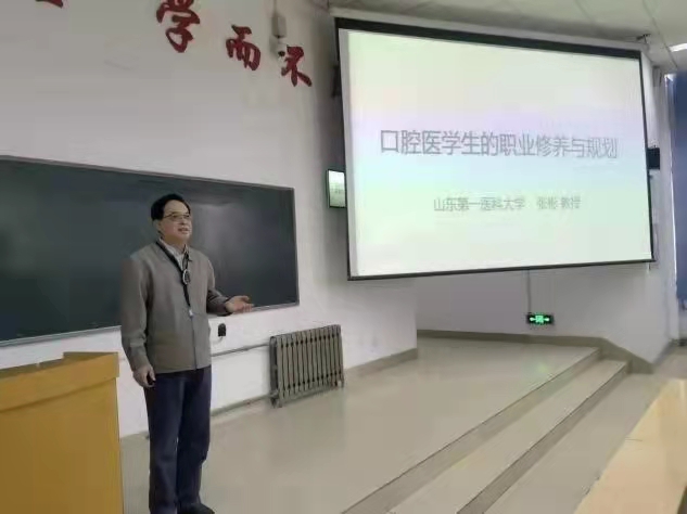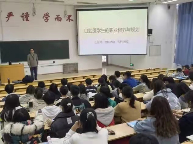 张教授首先阐述了口腔医学生大学生涯的基本规划并分享了自己的职业生涯的经历和经验,以此引出今日的主题。随后张教授与同学们对自己的职业生涯规划进行探讨。张教授指出,大学生的职业规划应从早开始,同学们需对自己有一个明确而精准的定位,从而在大学的学习生活中有目标地发展自己相应的才能,如此才有机会从日益激烈的竞争中找到自己前行的方向。同学们认真聆听,了解本专业的职业发展与要求,感受到身上的责任感和使命感,明确规划自己未来的人生方向。最后,张教授表达了对同学们的肯定与期许,真诚地解答了同学们的疑惑。在大家热烈的掌声中,讲座圆满结束。