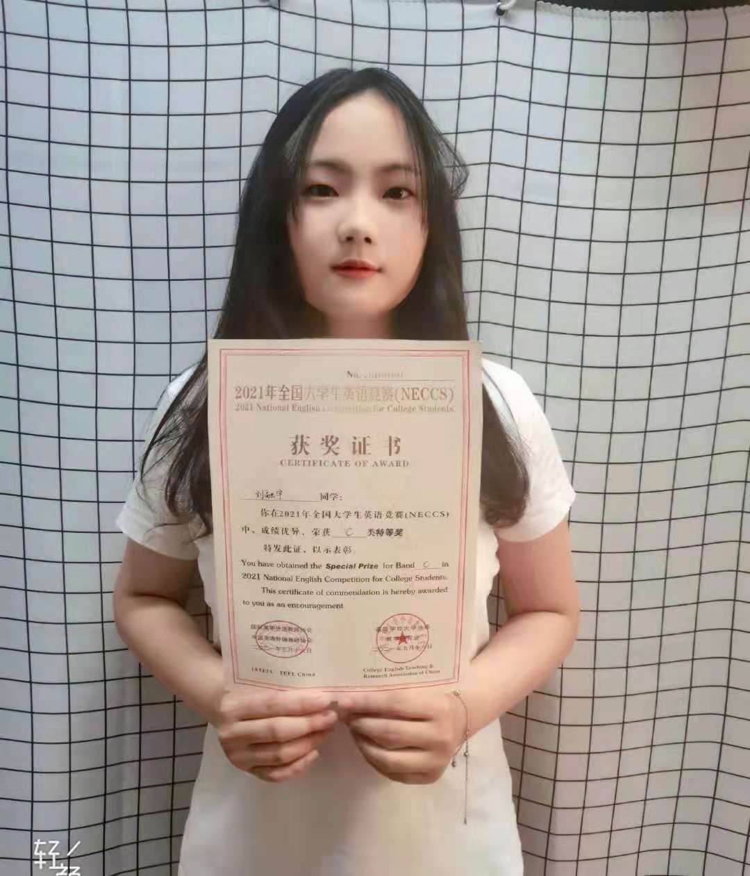 近日,2021年全国大学生英语竞赛山东赛区决赛成绩公布,beat365由唐霞老师指导的20级口腔医学本科三班的刘融宇同学荣获C类特等奖,下一步她将代表学校参加组委会组织的全国总决赛。
