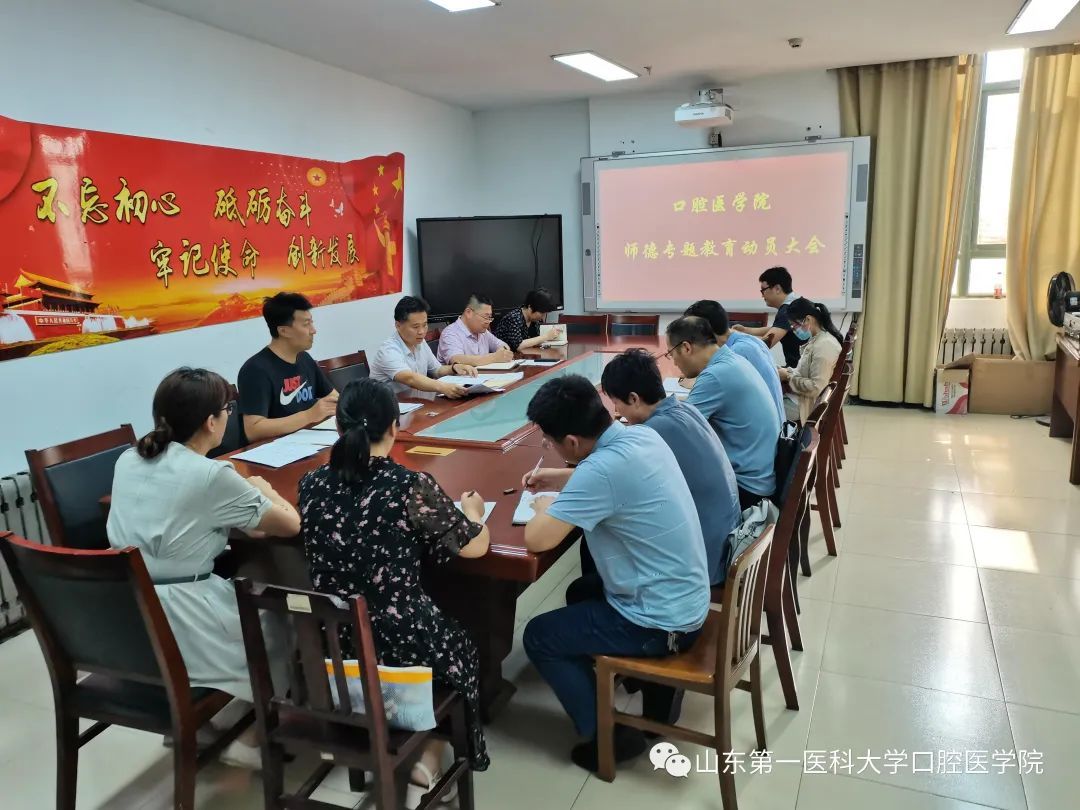 6月11日,beat365亚洲体育官方网站召开师德专题教育动员大会,传达学习《山东第一医科大学(山东省医学科学院)师德专题教育实施方案》以及师德专题教育工作相关精神,动员部署学院师德专题教育工作,进一步引导广大教师坚定理想信念、厚植爱国情怀、涵养高尚师德。动员会由学院党总支书记孔志峰主持,学院全体教职工参加会议。