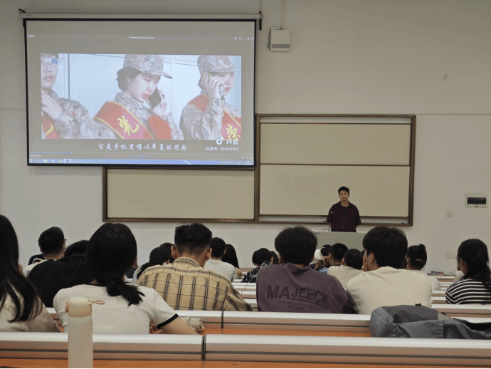 邹文颖同学从参军入伍条件、军队训练生活、毕业生提干优势等方面进行了介绍,让同学们对参军入伍有了更清晰深刻的了解。“少年不惧岁月长,彼方尚有荣光在。”邹文颖同学的分享点燃了同学们内心参军报国的花火。