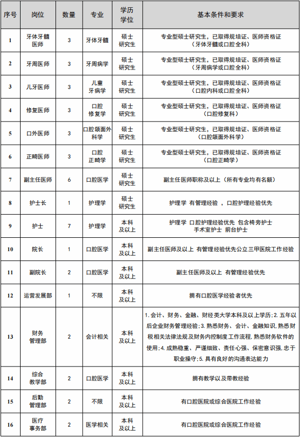 青岛黄海学院创建于1996年,是教育部批准的普通本科高校。学校坐落于中国第九个国家级新区——青岛西海岸新区核心地理位置,交通便利,山海相间,气候宜人,宜学宜居,办学27年来,为社会培养了16万余名高素质应用型人才。现开设70余个本专科专业,涵盖工学、管理学、经济学、教育学、艺术学、医学、文学等7个学科门类,是一所办学特色鲜明的综合性本科高校。现因学校附属口腔医院发展需要,拟面向海内外诚聘口腔医院工作人员,招聘条件、相关待遇及招聘职位如下: