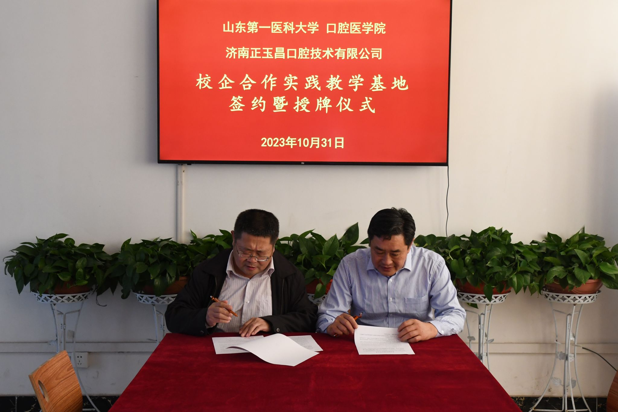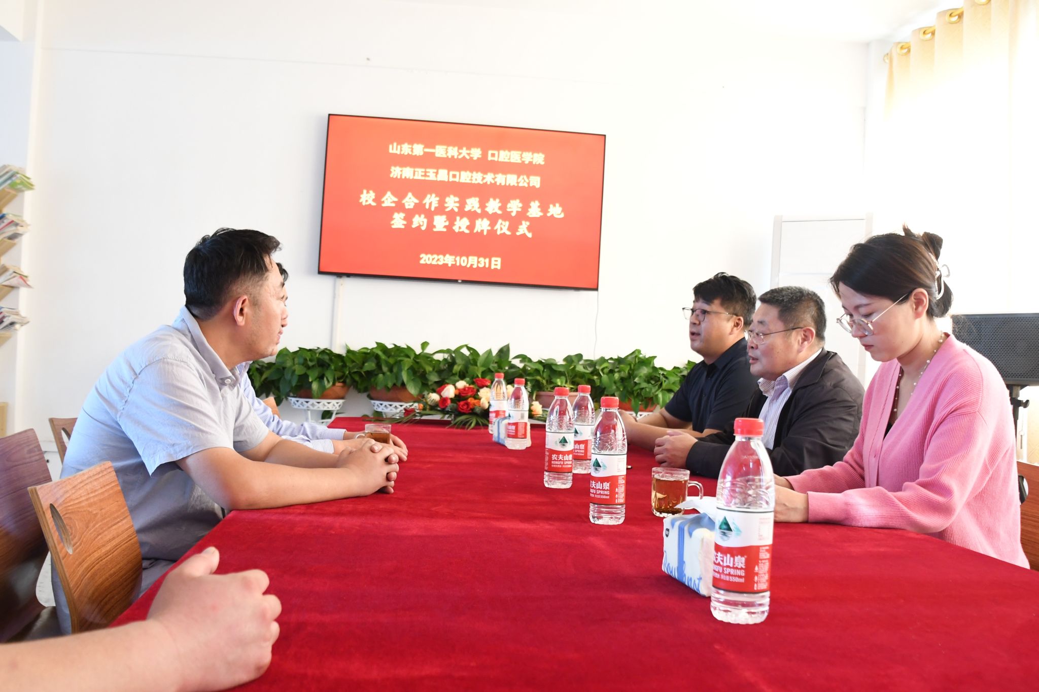 10月31日下午beat365亚洲体育官方网站副院长程厚文、教师孙允涵、车远倩一行走进济南正玉昌口腔技术有限公司,双方签订实践教学基地协议书并挂牌。