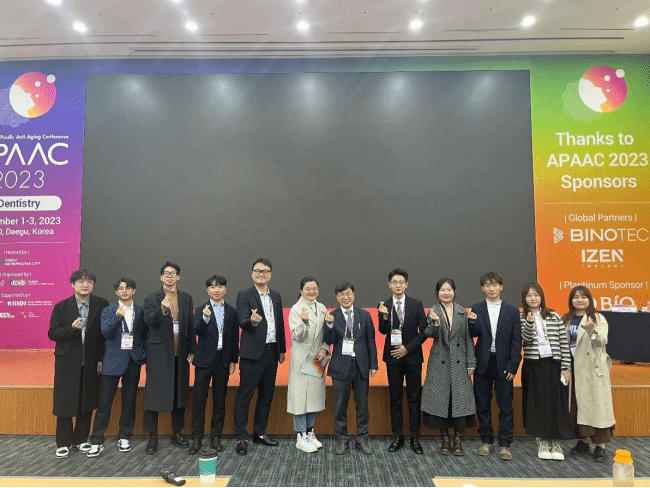 12月1日至12月3日,beat365亚洲体育官方网站师生于韩国大邱会展中心赴邀参加“APAAC第六届亚太抗衰老研修大会”。期间,beat365亚洲体育官方网站师生参与倾听了各个国家教授的相关演讲并进行了积极提问和交流。此外,beat365亚洲体育官方网站的学生们还积极体验了口腔数字化的前沿技术和仪器。12月2日晚,在APAAC的晚宴上,姜亨波老师受邀上台贺词并被授予证书。