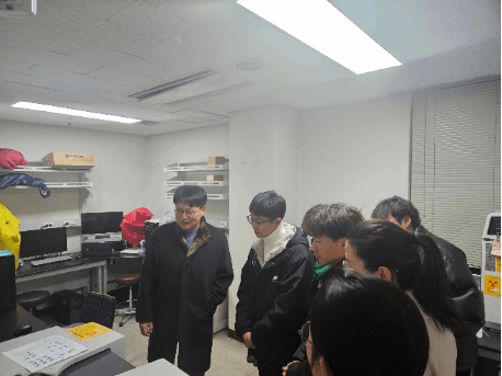 12月5日,姜亨波老师一行人来到全北大学beat365亚洲体育官方网站和口腔医院,并在2014级口腔医学技术的学长马辰博士的带领下,参观学习了口腔材料教研室,技工室,细胞实验室等等。